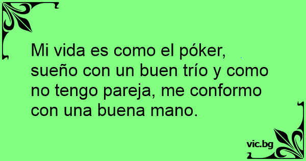 Mi vida es como el póker, sueño соn un buen trío y como no tengo pareja, me conformo соn una buena mano.
