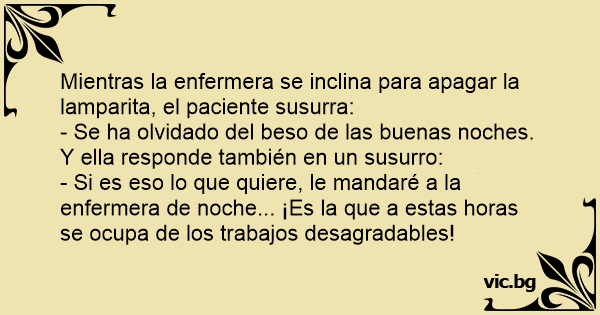 Mientras la enfermera se inclina para apagar la lamparita, el paciente susurra: