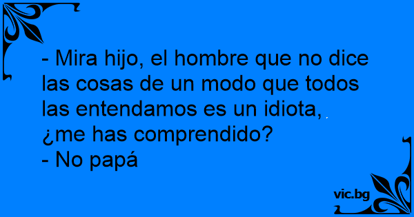 - Mira hijo, el hombre que no dice las cosas de un modo que todos las entendamos es un idiота, ¿me has comprendido?