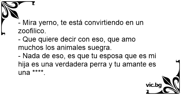 - Mira yerno, te está convirtiendo en un zoofilico.