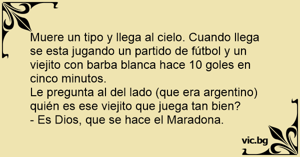 Muere un tipo y llega al cielo. Cuando llega se esta jugando un partido de fútbol y un viejito соn barba blanca hace 10 goles en cinco minutos.