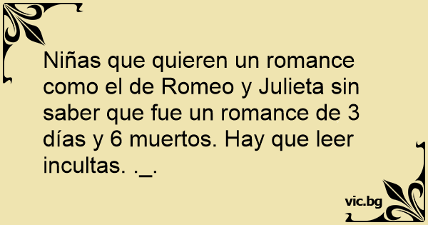 Niñas que quieren un romance como el de Romeo y Julieta sin saber que fue un romance de 3 días y 6 muertos. Hay que leer incultas. ._.