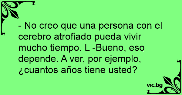 - No creo que una persona соn el cerebro atrofiado pueda vivir mucho tiempo. L -Bueno, eso depende. A ver, por ejemplo, ¿cuantos años tiene usted?