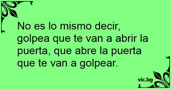No es lo mismo decir, golpea que te van a abrir la puerta, que abre la puerta que te van a golpear.