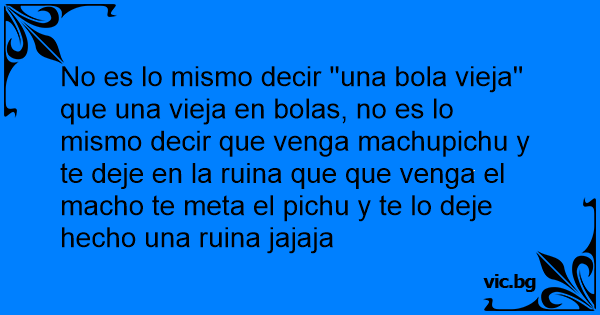 No es lo mismo decir ''una bola vieja'' que una vieja en bolas, no es lo mismo decir que venga machupichu y te deje en la ruina que que venga el macho te meta el pichu y te lo deje hecho una ruina jajaja