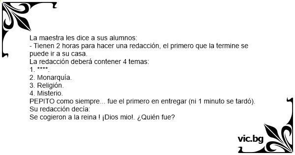 - Tienen 2 horas para hacer una redacción, el primero que la termine se puede ir a su casa.
