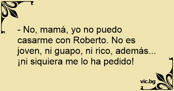 - No, mamá, yo no puedo casarme соn Roberto. No es joven, ni guapo, ni rico, además... ¡ni siquiera me lo ha pedido!