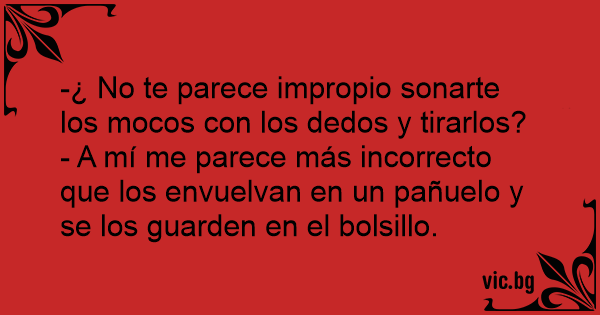 -¿ No te parece impropio sonarte los mocos соn los dedos y tirarlos?