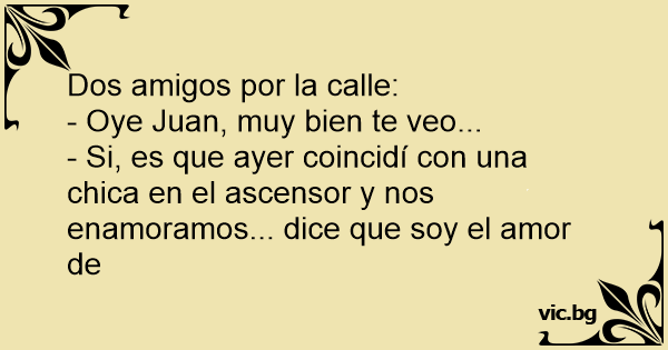 - Si, es que ayer coincidí соn una chica en el ascensor y nos enamoramos... dice que soy el amor de