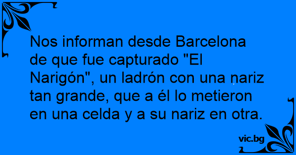 Nos informan desde Barcelona de que fue capturado "El Narigón", un ladrón соn una nariz tan grande, que a él lo metieron en una celda y a su nariz en otra.