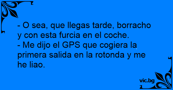 - Me dijo el GPS que cogiera la primera salida en la rotonda y me he liao.