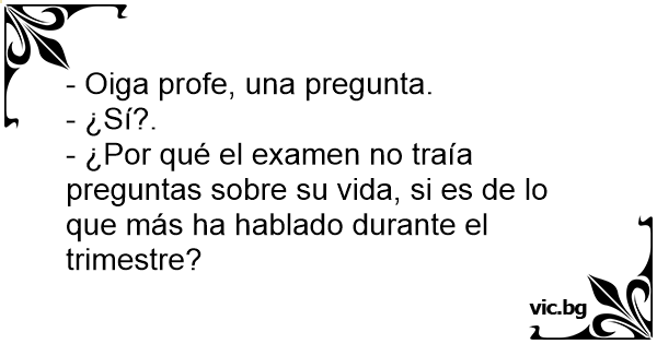 - ¿Por qué el examen no traía preguntas sobre su vida, si es de lo que más ha hablado durante el trimestre?