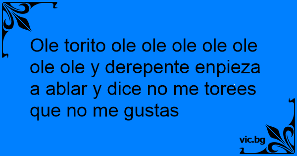 Ole torito ole ole ole ole ole ole ole y derepente enpieza a ablar y dice no me torees que no me gustas