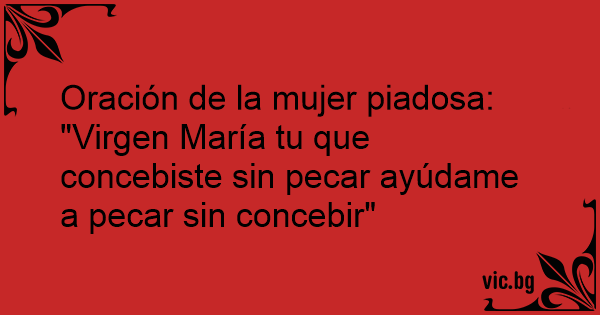 "Virgen María tu que concebiste sin pecar ayúdame a pecar sin concebir"