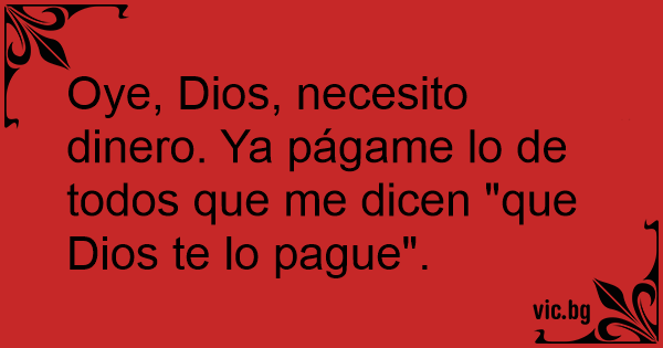 Oye, Dios, necesito dinero. Ya págame lo de todos que me dicen "que Dios te lo pague".