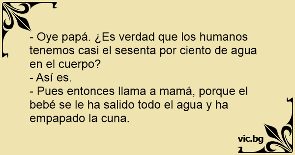 - Oye papá. ¿Es verdad que los humanos tenemos casi el sesenta por ciento de agua en el cuerpo?