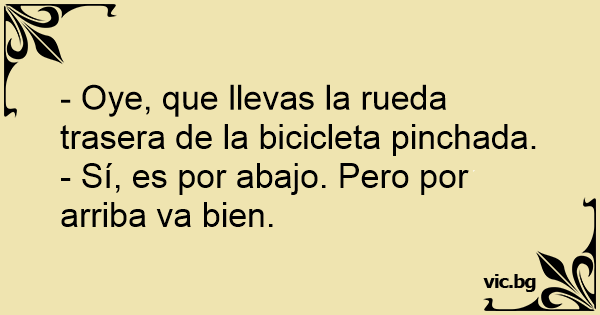 - Oye, que llevas la rueda trasera de la bicicleta pinchada.