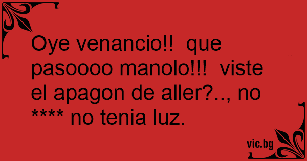 Oye venancio!! que pasoooo manolo!!! viste el apagon de aller?.., no **** no tenia luz.