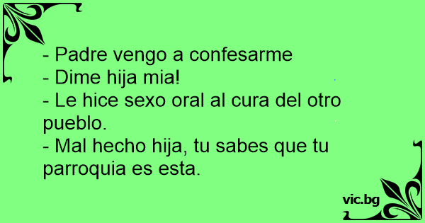 Entra una mujer en el confesionario y dice: - Padre me arrepiento de haber violado al cura de la otra parroquia. A lo que el cura le responde: - Pero hija, ¿¿tú no sabes que esta es tu iglesia??.