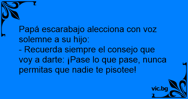 Papá escarabajo alecciona соn voz solemne a su hijo: