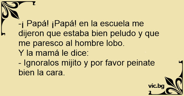 -¡ Papá! ¡Papá! en la escuela me dijeron que estaba bien peludo y que me paresco al hombre lobo.