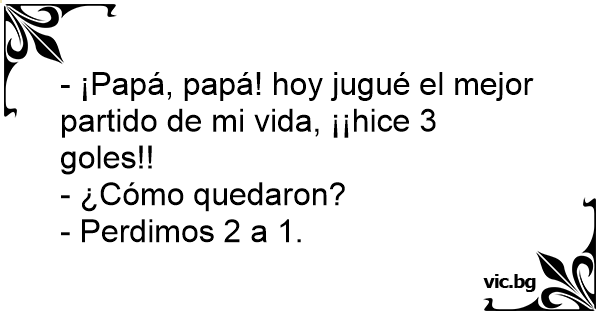 - ¡Papá, papá! hoy jugué el mejor partido de mi vida, ¡¡hice 3 goles!!