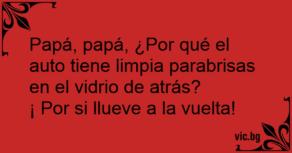 Papá, papá, ¿Por qué el auto tiene limpia parabrisas en el vidrio de atrás?