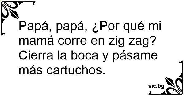 - De ce fuge tata în zig-zag, mamă? - Taci şi mai adu gloanţe!