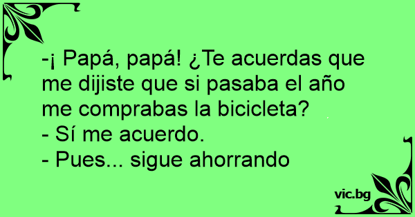 -¡ Papá, papá! ¿Te acuerdas que me dijiste que si pasaba el año me comprabas la bicicleta?