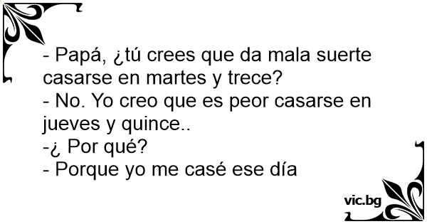- Papá, ¿tú crees que da mala suerte casarse en martes y trece?