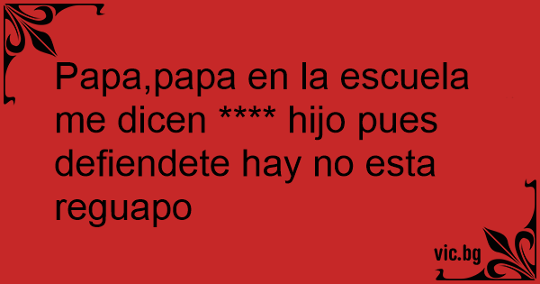 Papa,papa en la escuela me dicen **** hijo pues defiendete hay no esta reguapo