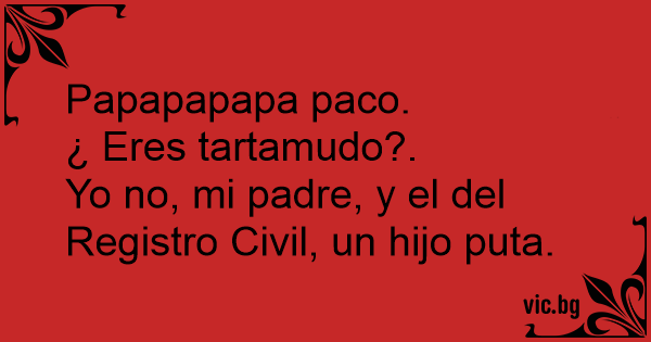 En una oficina: ¿ Su nombre? Pepepepedro Pepepérez. ¿ Es usted tartamudo? ¡ No, pero mi padre sí, y el del Registro un bruto!