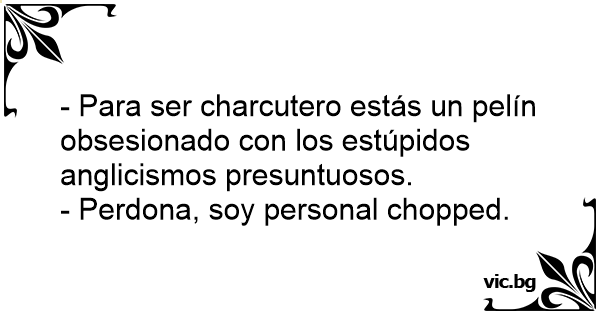 - Para ser charcutero estás un pelín obsesionado соn los estúpidos anglicismos presuntuosos.