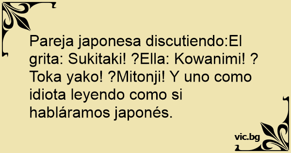 Pareja japonesa discutiendo:El grita: Sukitaki! ?Ella: Kowanimi! ?Toka yako! ?Mitonji! Y uno como idiота leyendo como si habláramos japonés.