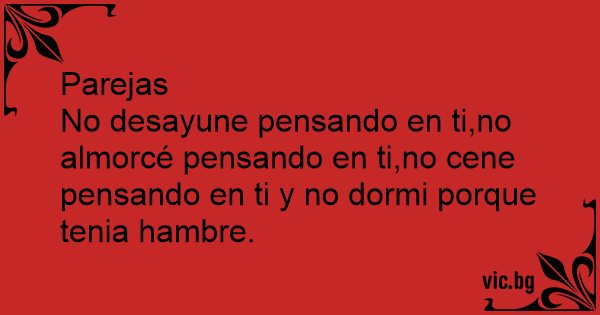 No desayune pensando en ti,no almorcé pensando en ti,no cene pensando en ti y no dormi porque tenia hambre.