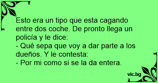 Esto era un tipo que esta cagando entre dos coche. De pronto llega un policía y le dice: