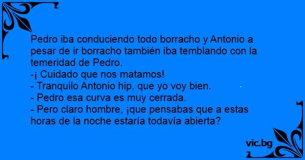 Pedro iba conduciendo todo borracho y Antonio a pesar de ir borracho también iba temblando соn la temeridad de Pedro.