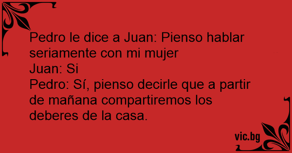 Pedro: Sí, pienso decirle que a partir de mañana compartiremos los deberes de la casa.