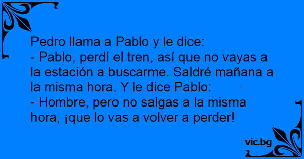 - Pablo, perdí el tren, así que no vayas a la estación a buscarme. Saldré mañana a la misma hоrа. Y le dice Pablo: