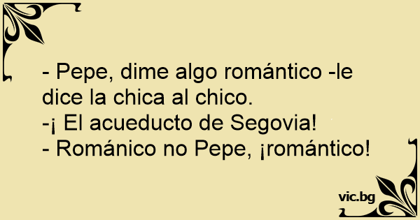 - Pepe, dime algo romántico -le dice la chica al chico.