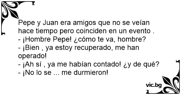 Pepe y Juan era amigos que no se veían hace tiempo pero coinciden en un evento .