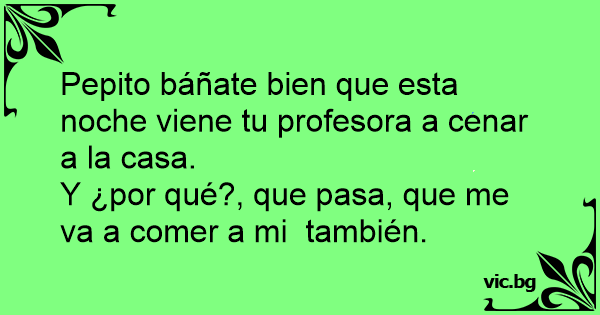 Pepito báñate bien que esta noche viene tu profesora a cenar a la casa.
