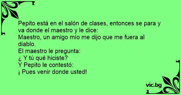Pepito está en el salón de clases, entonces se para y va donde el maestro y le dice: