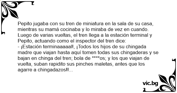 - ¡Estación terminaaaaal!, ¡Todos los hijos de su chingada madre que viajan hasta aquí tomen todas sus chingaderas y se bajan en chinga del tren; bola de ****os; y los que viajan de vuelta, suban rapidito sus pinches maletas, antes que los agarre a chingadazos!!