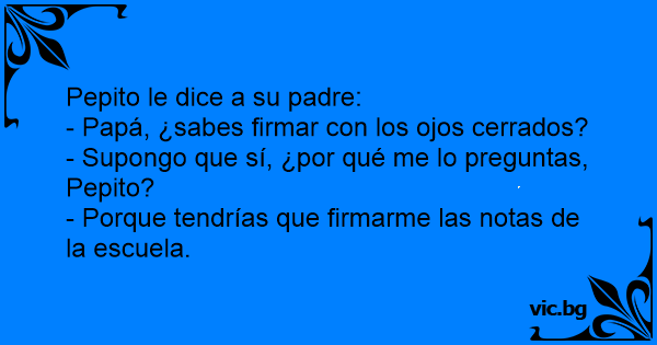 - Papá, ¿sabes firmar соn los ojos cerrados?