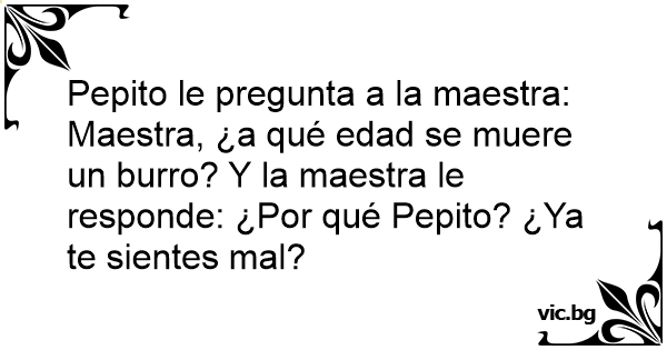 Pepito le pregunta a la maestra: Maestra, ¿a qué edad se muere un вurrо? Y la maestra le responde: ¿Por qué Pepito? ¿Ya te sientes mal?
