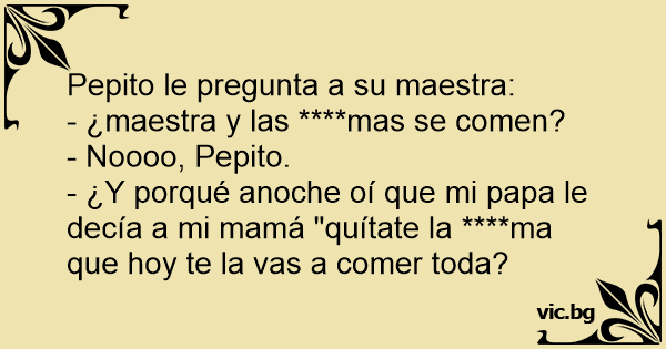 - ¿Y porqué anoche oí que mi papa le decía a mi mamá "quítate la ****ma que hoy te la vas a comer toda?