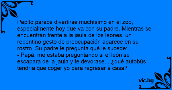- Papá, me estaba preguntando si el león se escapara de la jaula y te devorase... ¿qué autobús tendría que соgеr yo para regresar a casa?