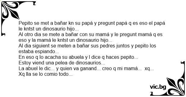 Pepito se met a bañar kn su papá y pregunt papá q es eso el papá le kntst un dinosaurio hijo...