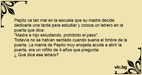 Pepito va tan mal en la escuela que su madre decide dedicarle una tarde para estudiar y coloca un letrero en la puerta que dice: